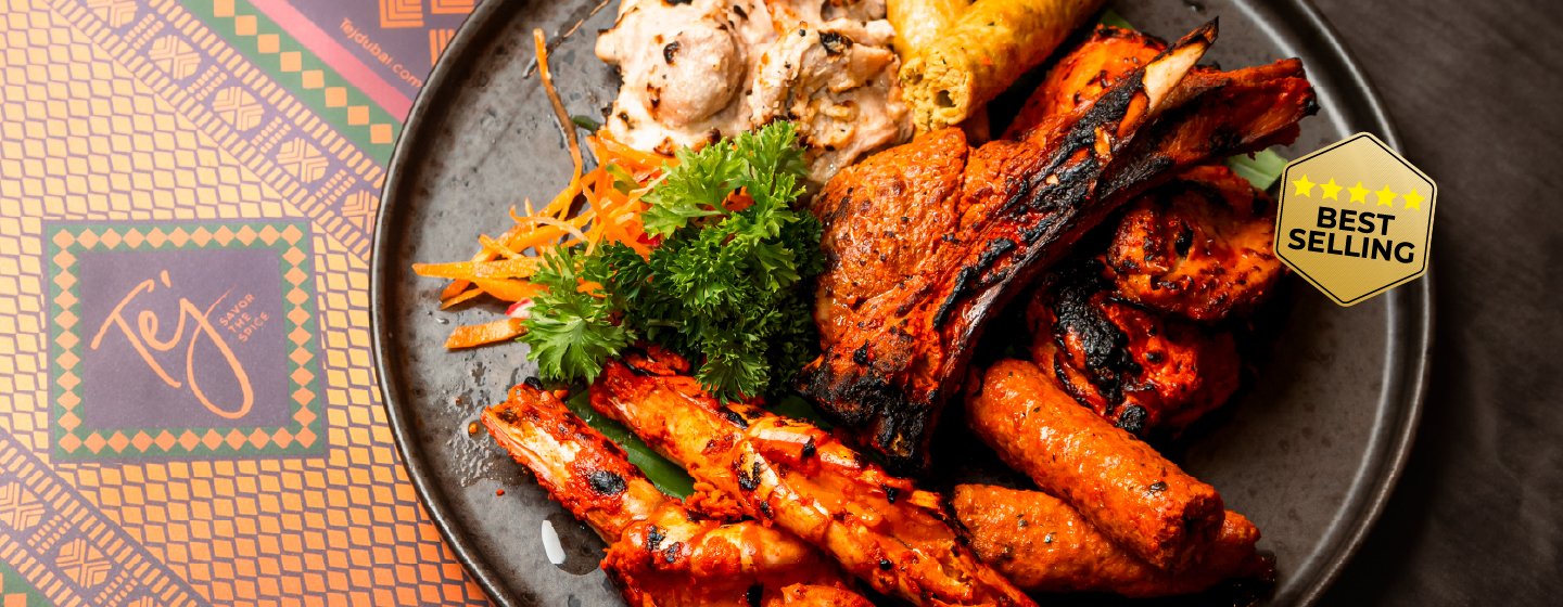 Tej is a hidden gem which is conveniently located at Ramada Deira and is easily accessible through metro as well. The food was surprisingly delicious and especially the butter chicken was so good unlike other restaurants where they serve it too sweet. The salads, starters , mains and desserts everything was yum 😋?????
